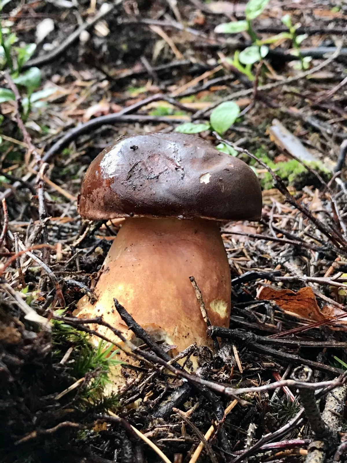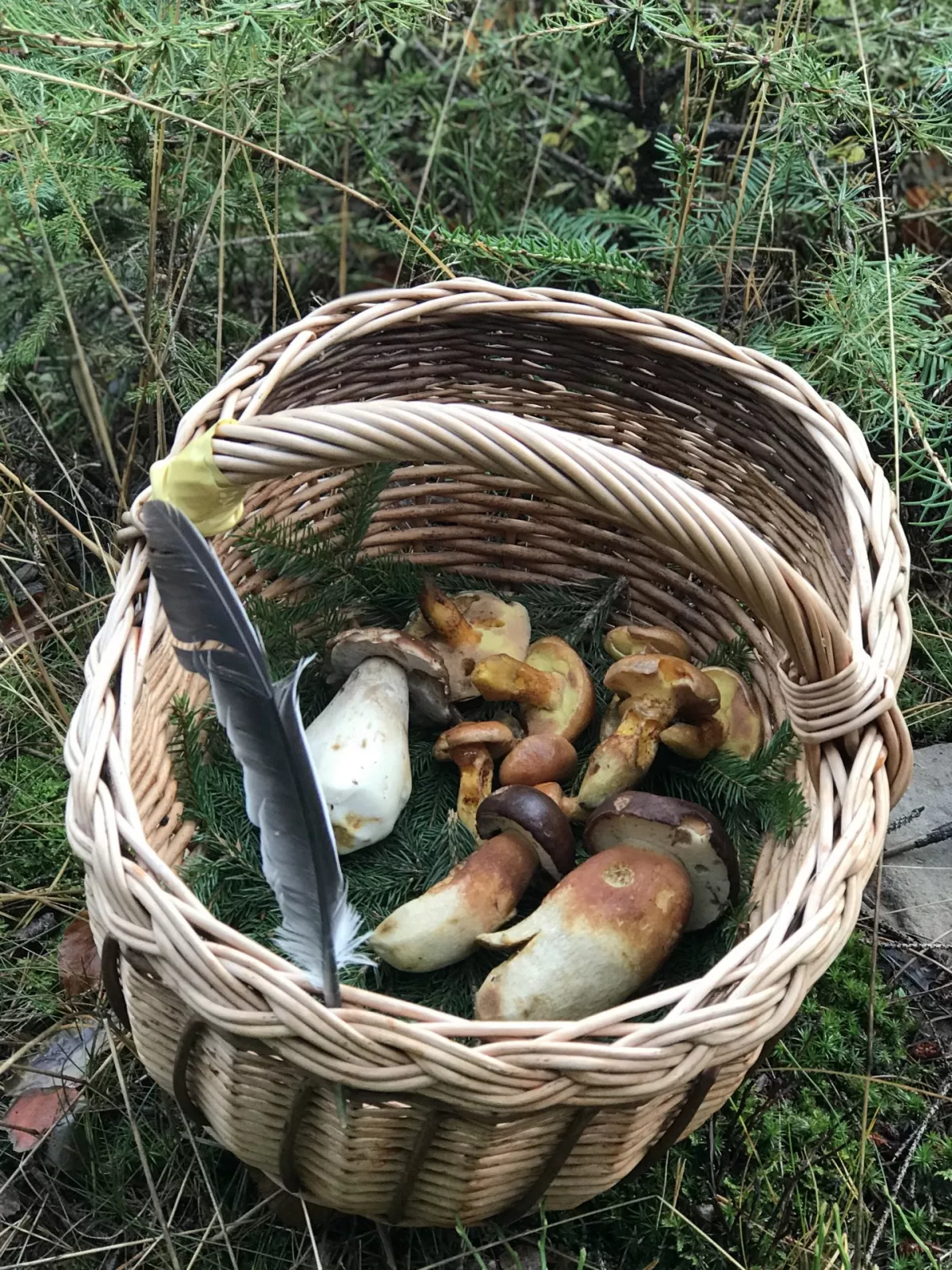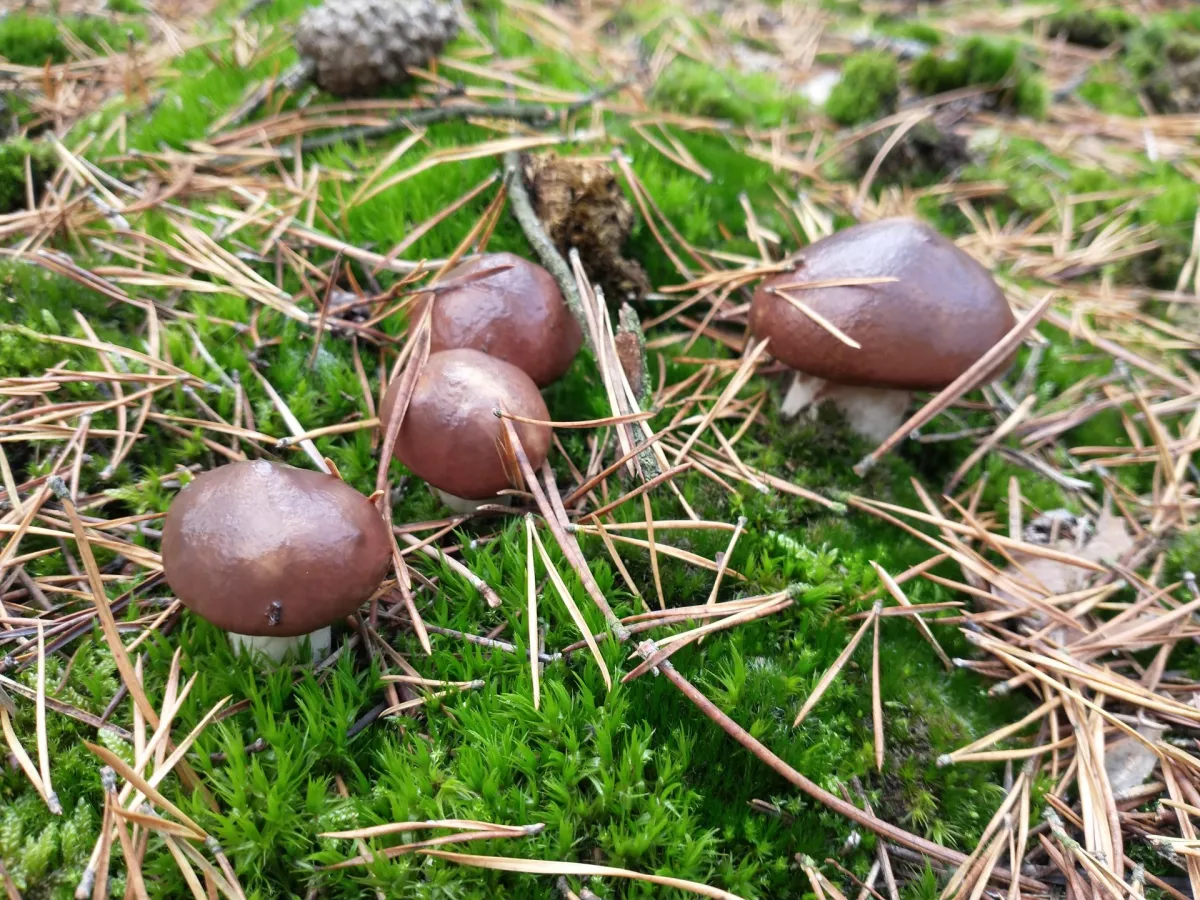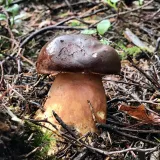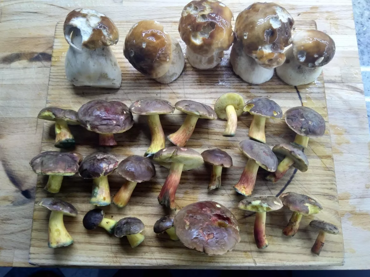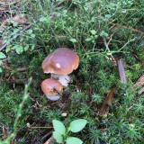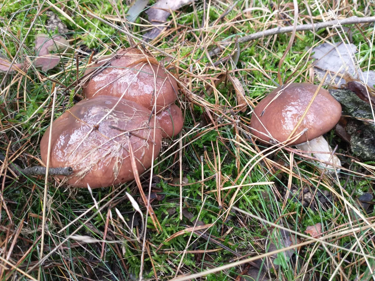 Na cestě jsem narazil na "partičku" klouzků, a fakt je, že v tomto počasí dostojí svému názvu. (jak úhoři) Hadřík, který po deštích do lesa nosím pomohl. Btw. ten doporučuji, otřít houby a nejen klouzky před vložením do košíku je po deštích dobrá věc. % že si domů přinesete houbové pesto je pak nižší. Při ústupu jsem ještě našel dva hnědý, opět v borůvčí. Bedly, pýchavky, které jsou zde zmiňovány že jedou ve druhé vlně, zde zero.