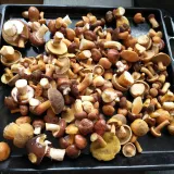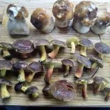 17.10. Křivoklátsko - po první cca půl hodině v podstatě bez nálezu, pouze jeden maličký dubák a pár bedel, jsme začali pochybovat, že najdeme něco pořádného. Pak jsme však kousek od koryta potoků zahlédli pár klouzků. Co na nás čekalo za korytem? V oblasti cca 30x100m doslova políčka klouzků, na jednom místě vždy třeba 10-15 zdravých a krásných hub, popojdete o 10 metrů vedle a tam další.