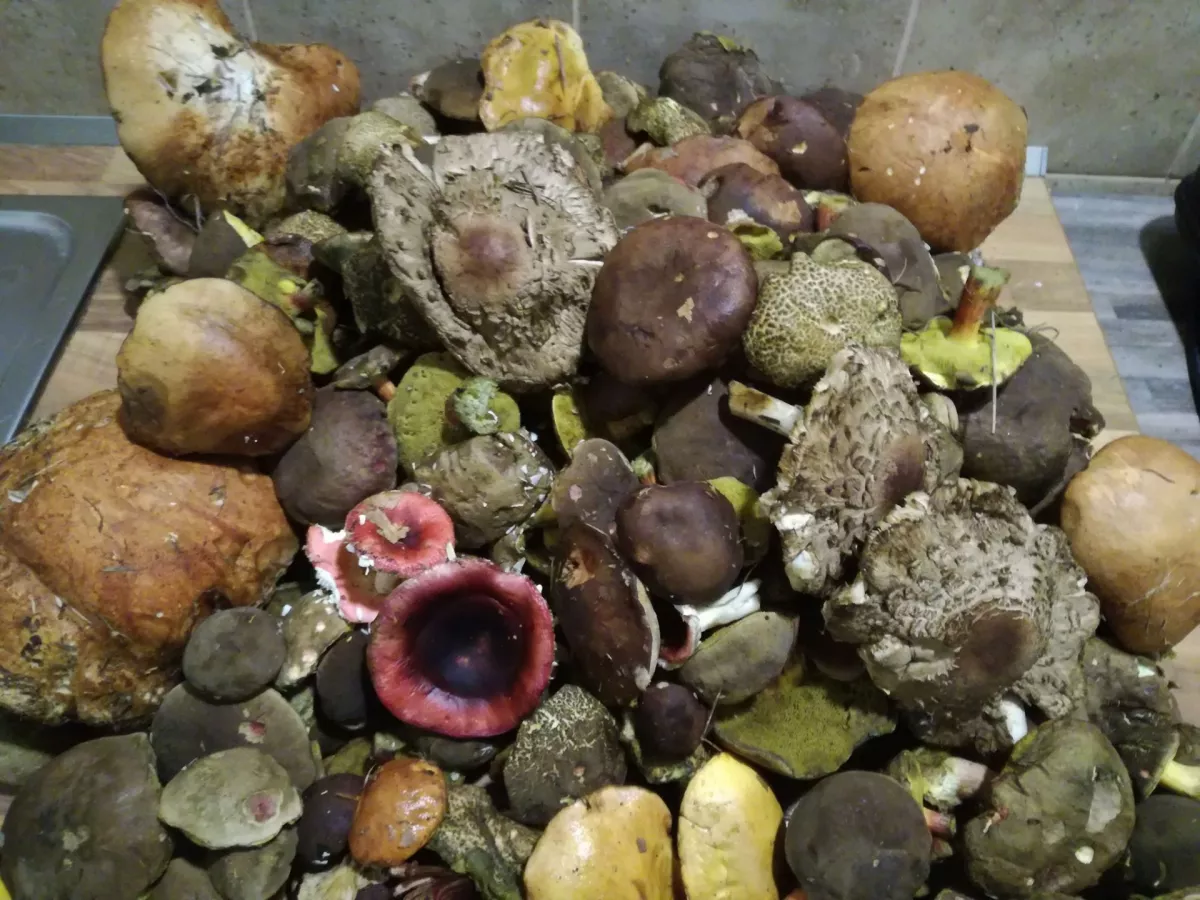 Rakovnicko, polesí Tři stoly: Dnes ve dvou za tři hodiny dva plné koše. Tuny plesnivých babek, a také metráky velkých žlutých klouzků, které nikdo nesbírá. Růžovky a bedly také zůstávají bez povšimnutí. Kdo je má rád, ať si vezme nůši a vidle. Jinak různé druhy hřibů od "modráků" až po smrkové a dubové, a to i v místech, kde jindy nebyly vidět. Několik let jsem tam takovou úrodu hřibovitých neviděl. Půda je příjemně vlhká, mechy nacucané. Vydrží-li počasí, nadílka zřejmě hned tak neskončí.