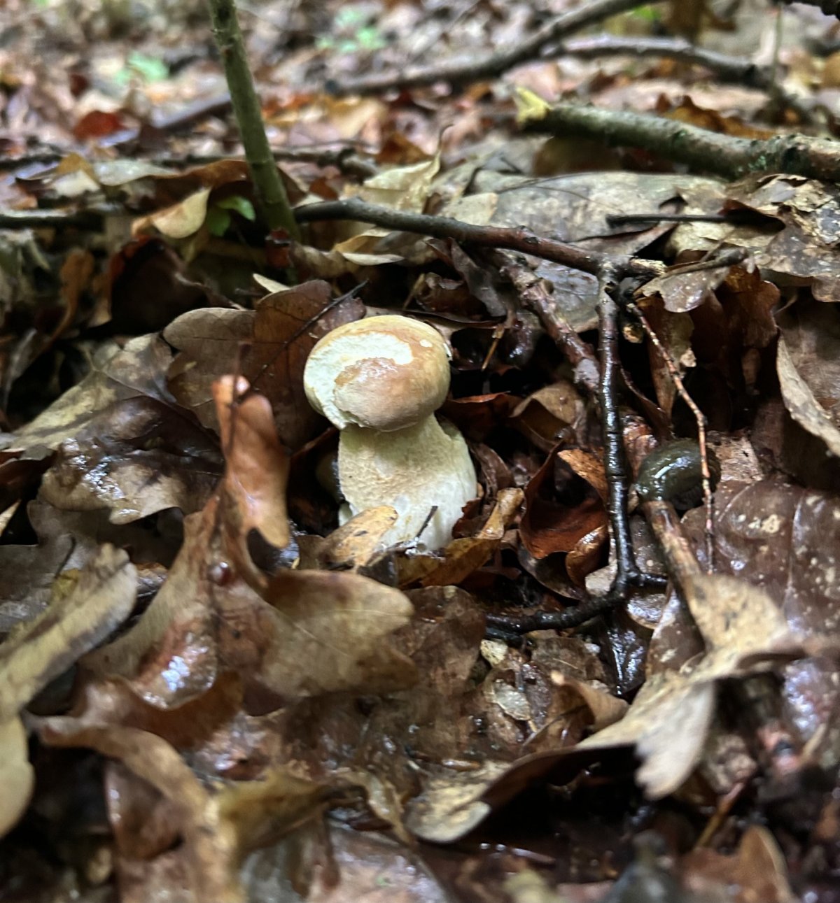 Dnes první malé dubové hříbky a 1 obrovská bedla, Benešovsko.