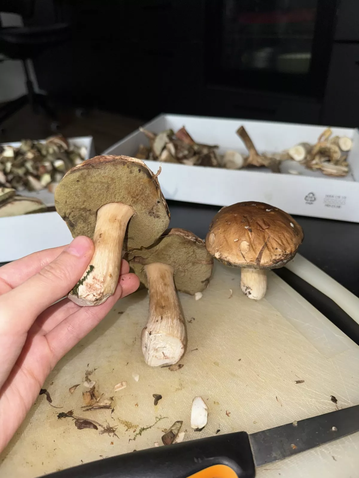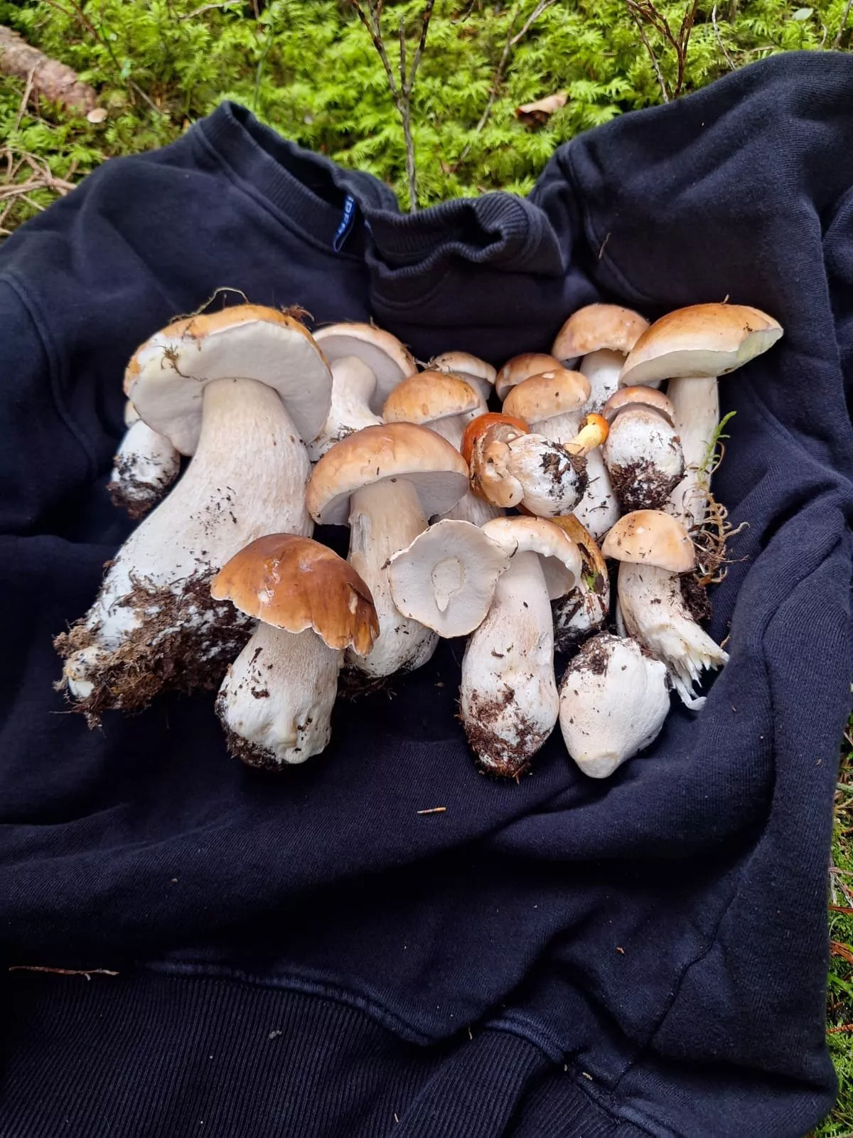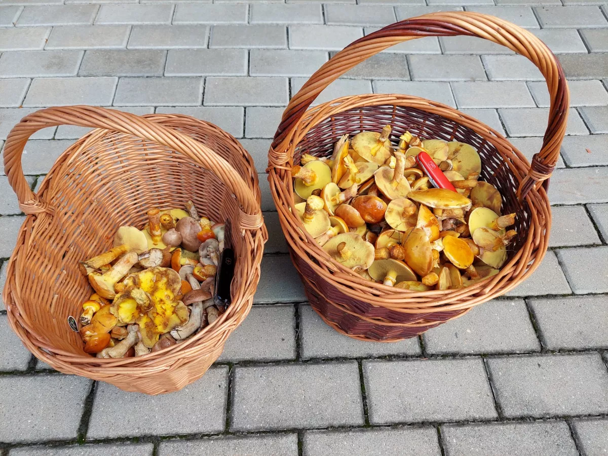Kladno: Hodně klouzků, bedly, pět hřibů smrkových. Houby rostou, ale vrchol sezóny to neni. Ovšem lidí je v lese extrémně.