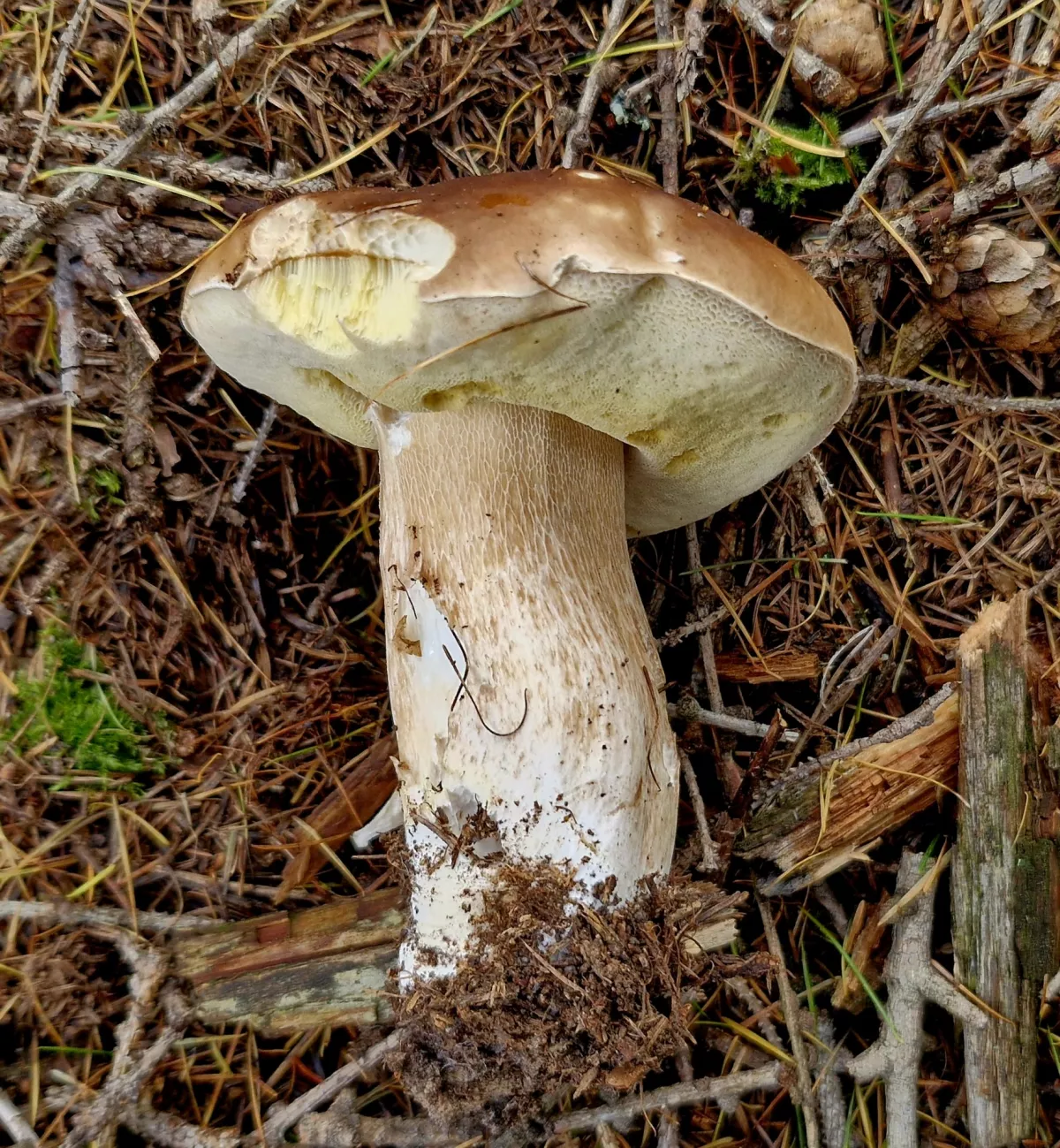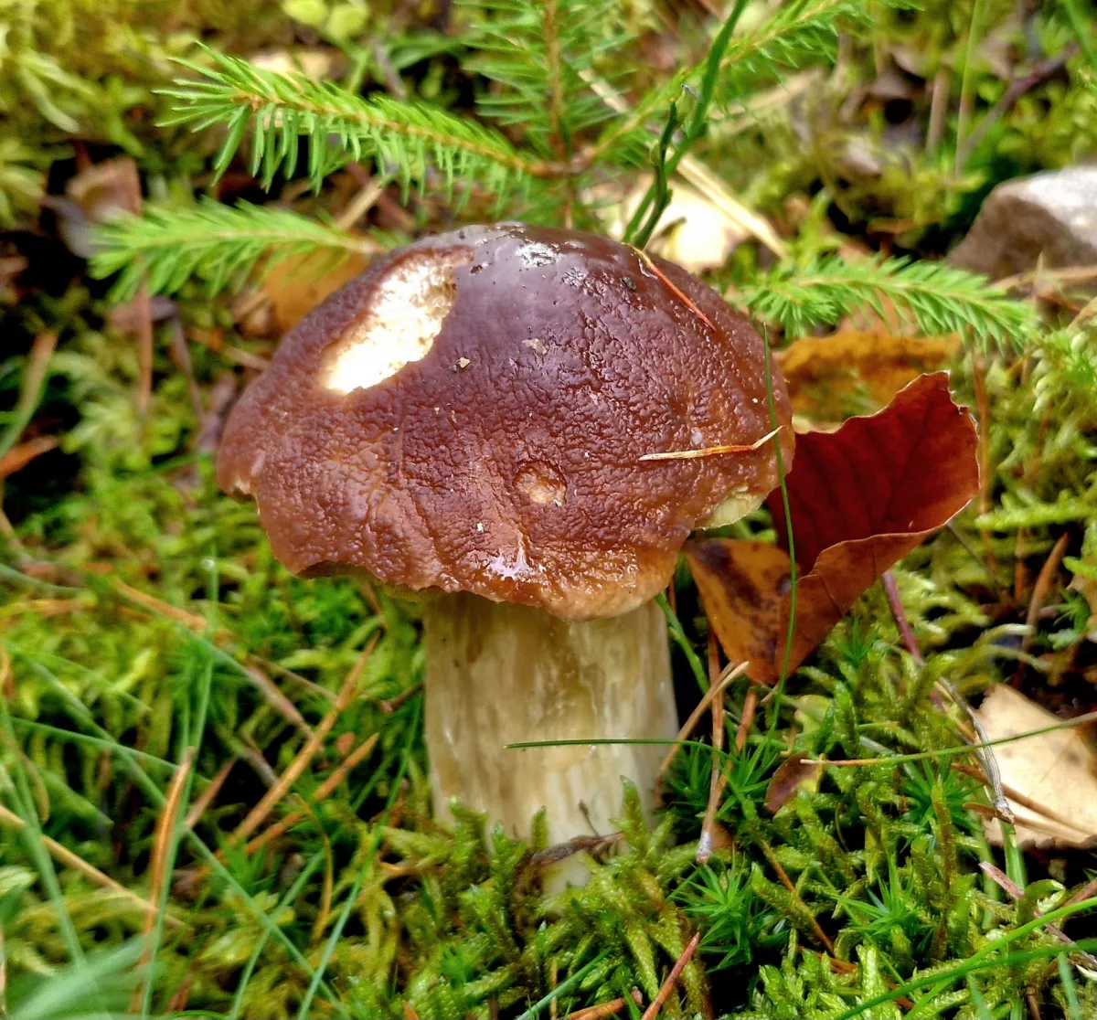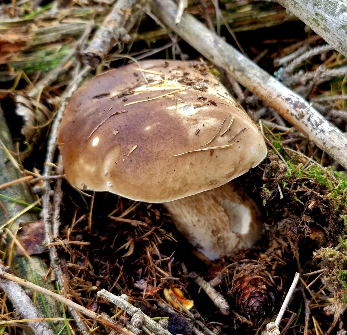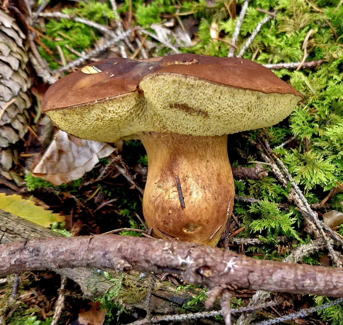 25. 10. 2025 – v okolí Slavonic (ano, vím, že to není Středočeský kraj). Okolnosti mě zavedly do těchto končin. Trochu to tady znám, ale klasicky jsem vyrazil tak nějak intuitivně do „nějakého“ lesa. Bohužel se stalo to, co v konečném důsledku nemám moc rád. Během chvilky jsem našel docela slušného smrkáče, takže jsem vnitřně zaplesal, jaká to bude dnes paráda. Nebyla. Po hodině jsem byl těsně před tím, než jsem chtěl hodit ručník do houbařského ringu. Ještě chvilku jsem po lese kroužil a vzal si pár hnědáků (kvalita dobrá, vzhled nic moc), dvě bedly, pár čirůvek a jednoho kominíka (hřib nachovýtrusý) — toho jsem už léta v košíku neměl. Takže vlastně k datu úplně normální houbařina. Prima den s, nebo bez hub hlavně ať je fajn. HT