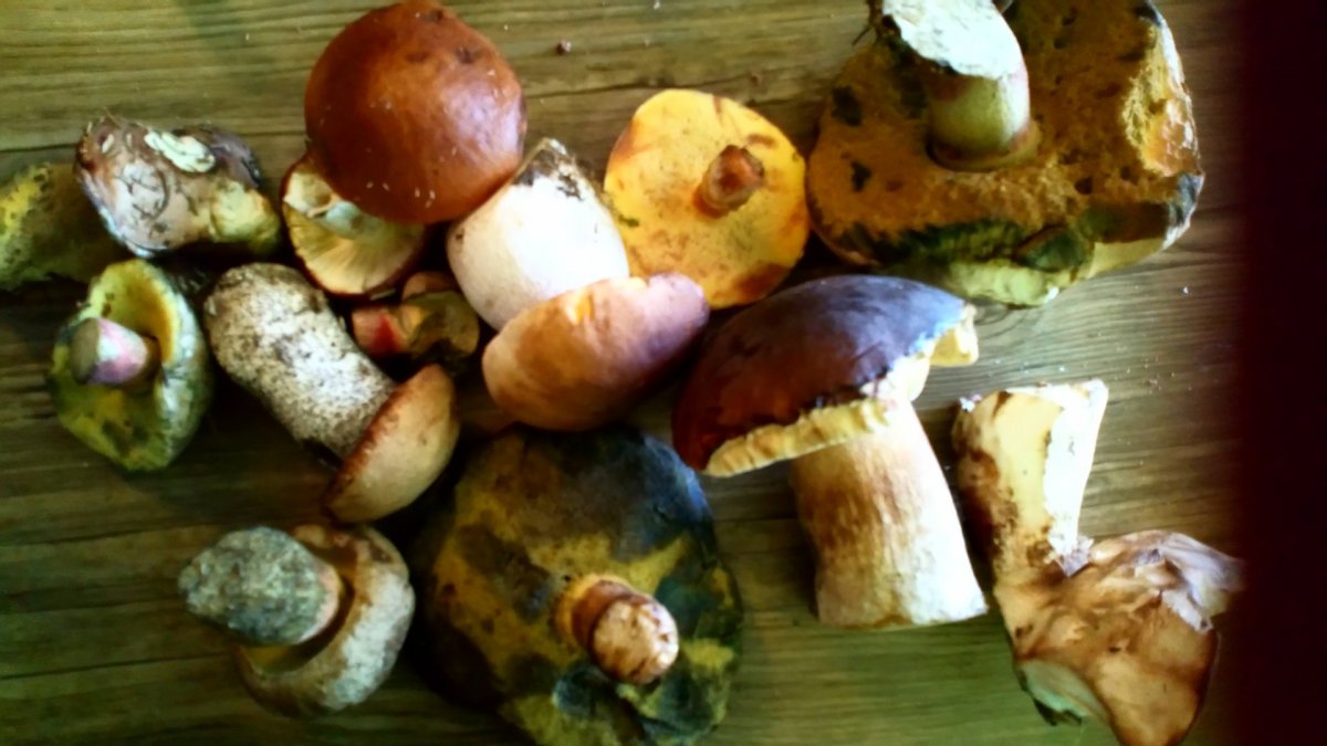 Nad Žatcem u Holedeče dva koše zdravých křemenáčů, ne velikých, ale mraky, něco málo suchohřibů a pár klouzků