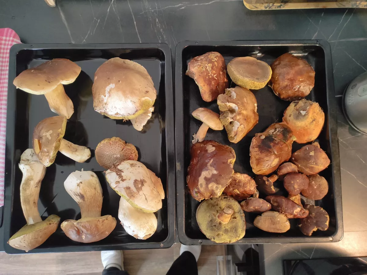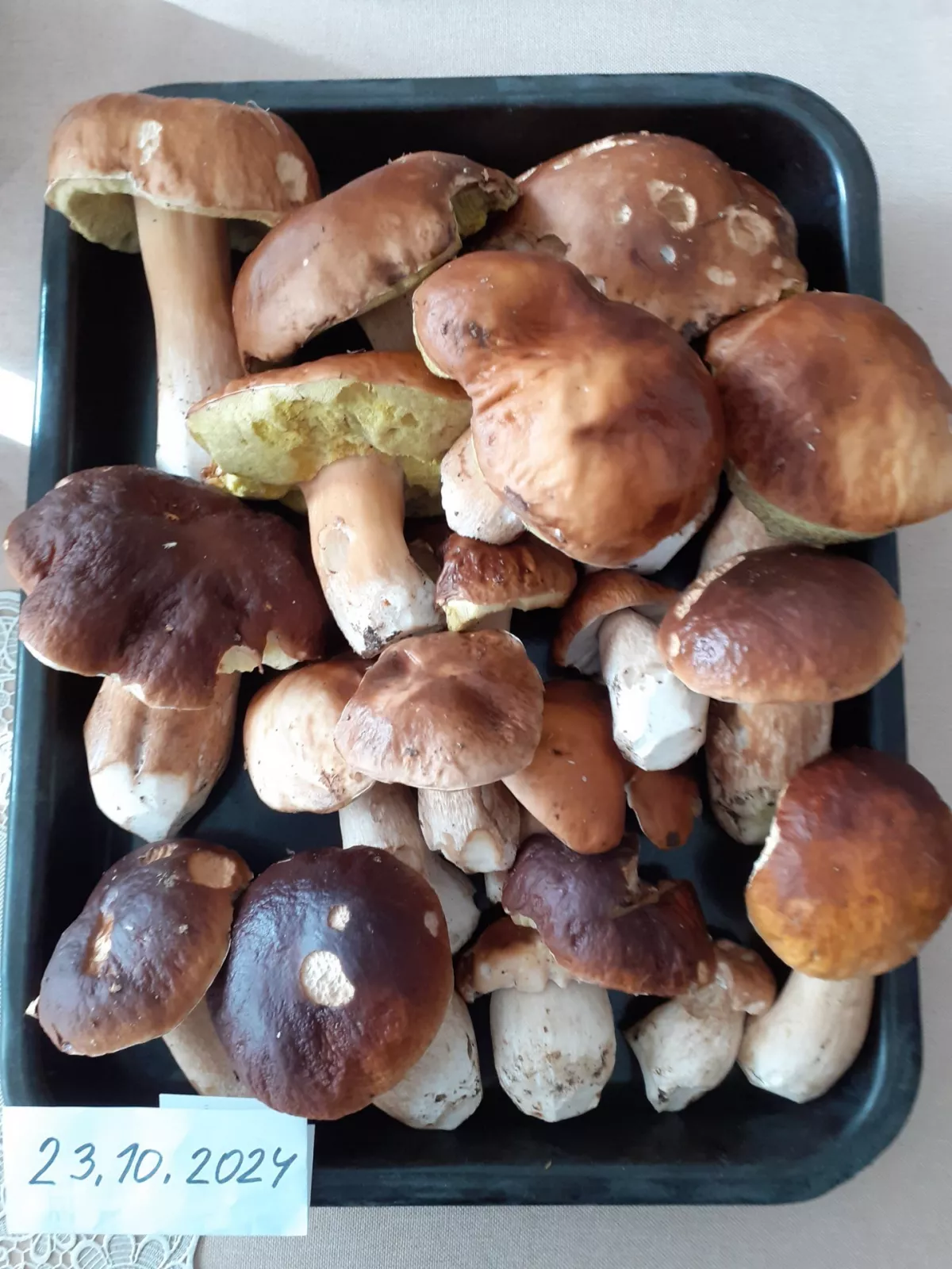 Dnes Úštěk, už je třeba naběhat více km po lese, masívní růst hřibů už končí, ale ještě jsem nějaké našel. Nejvíce hřibů bylo v jehličnatých lesích, dost bylo i kačenek(hřib strakoš). Dlouho už nepršelo, takže dost kačenek bylo úplně vyschlých. Na to, že je 24.října, tak velká spokojenost, našel jsem plný koš, v lese ani jeden člověk, nádherné počasí a 3h procházka lesem. Letošní úžasná a velmi štědrá sezóna hřibů končí a těším se na příští rok. Kdo máte ještě o víkendu čas, tak zkuste ještě vyrazit do lesa a určitě se něco ještě najde. A když ne, tak procházka lesem pohladí na duši.