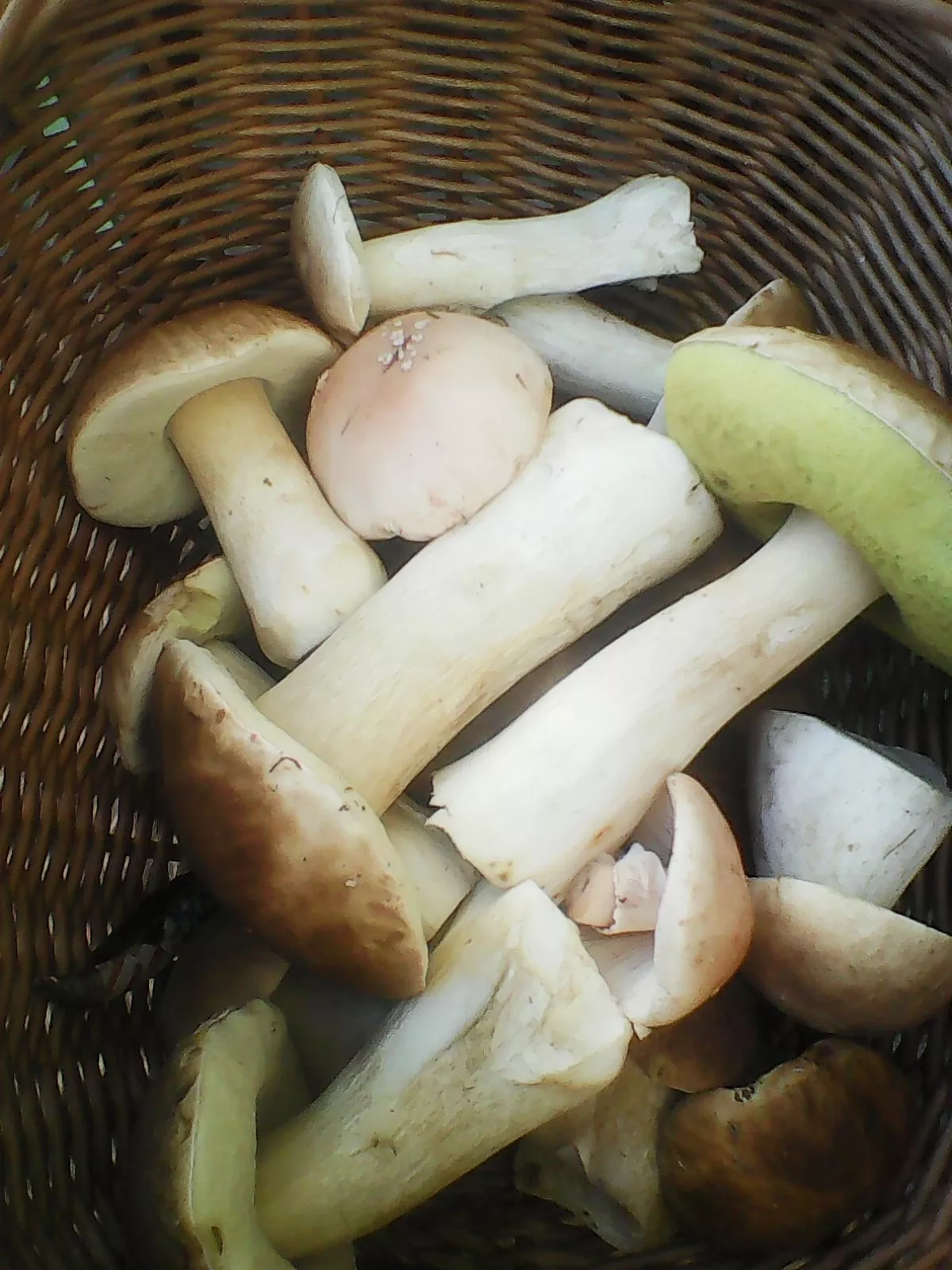 U Pohledecké skály aut jak na pouti. Nicméně za hodinu plný koš. Hřiby smrkové, hnědé a kováři. Červivost je malá i us starších a velkých plodnic. Ale nerostou všude. Každopádně to rozhodně nejsou žně.