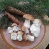 Okolí Křižanov, v lese nic, 2 holubinky, 2 mini klouzci, 6 praváků - jedno místo u mokřiny.