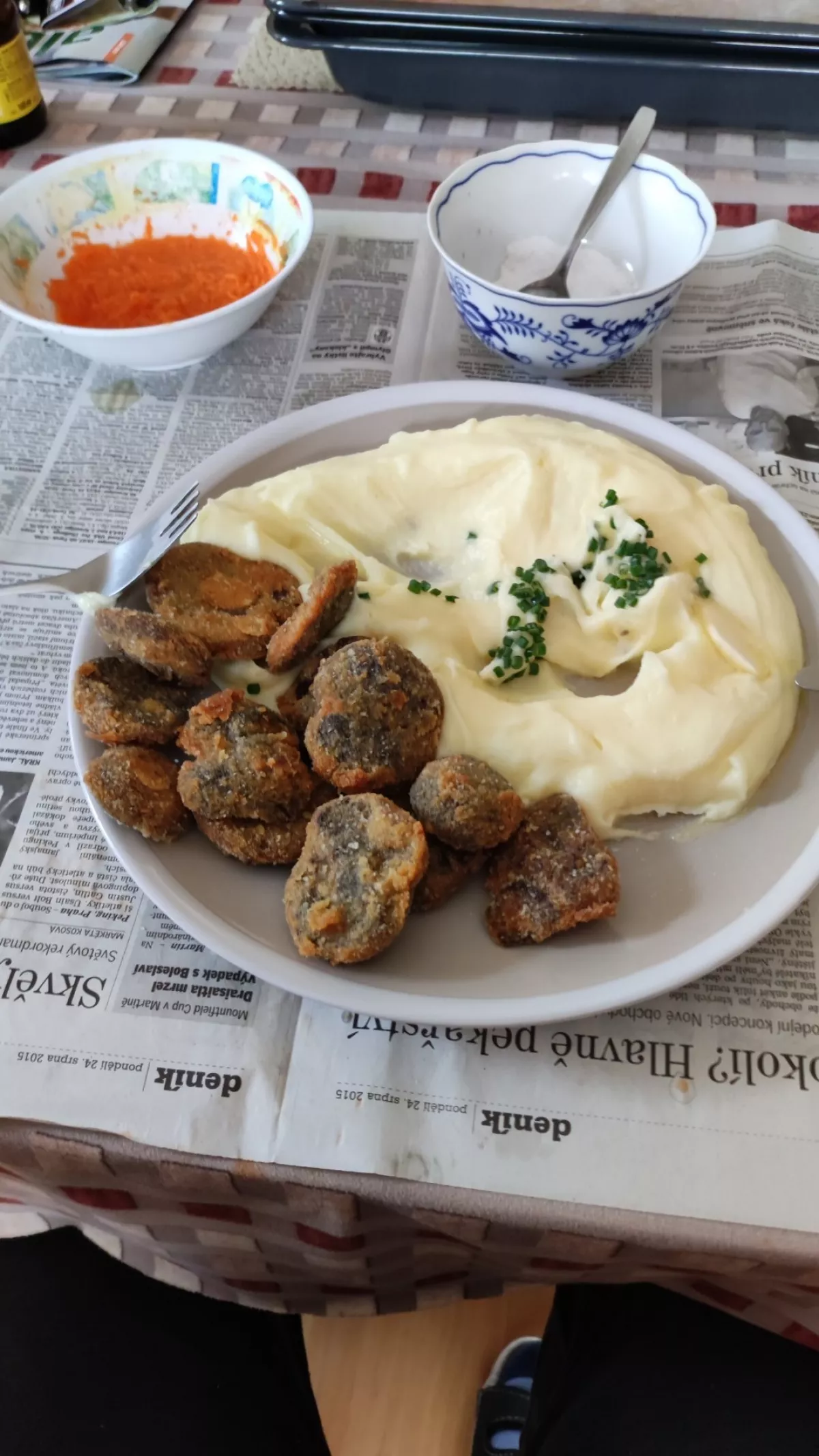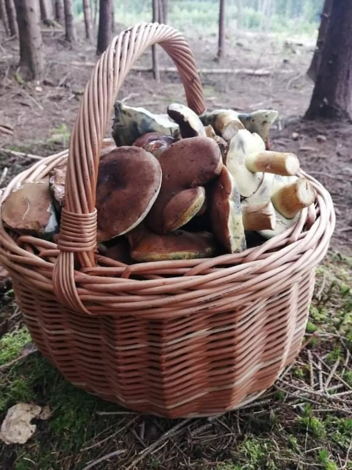 Dneska u Dlouhého. Za dvě hodiny půl koše. Převážně hřiby hnědé. Pár modráků, jeden kovář. Dva kozáci a dva křemenáče.