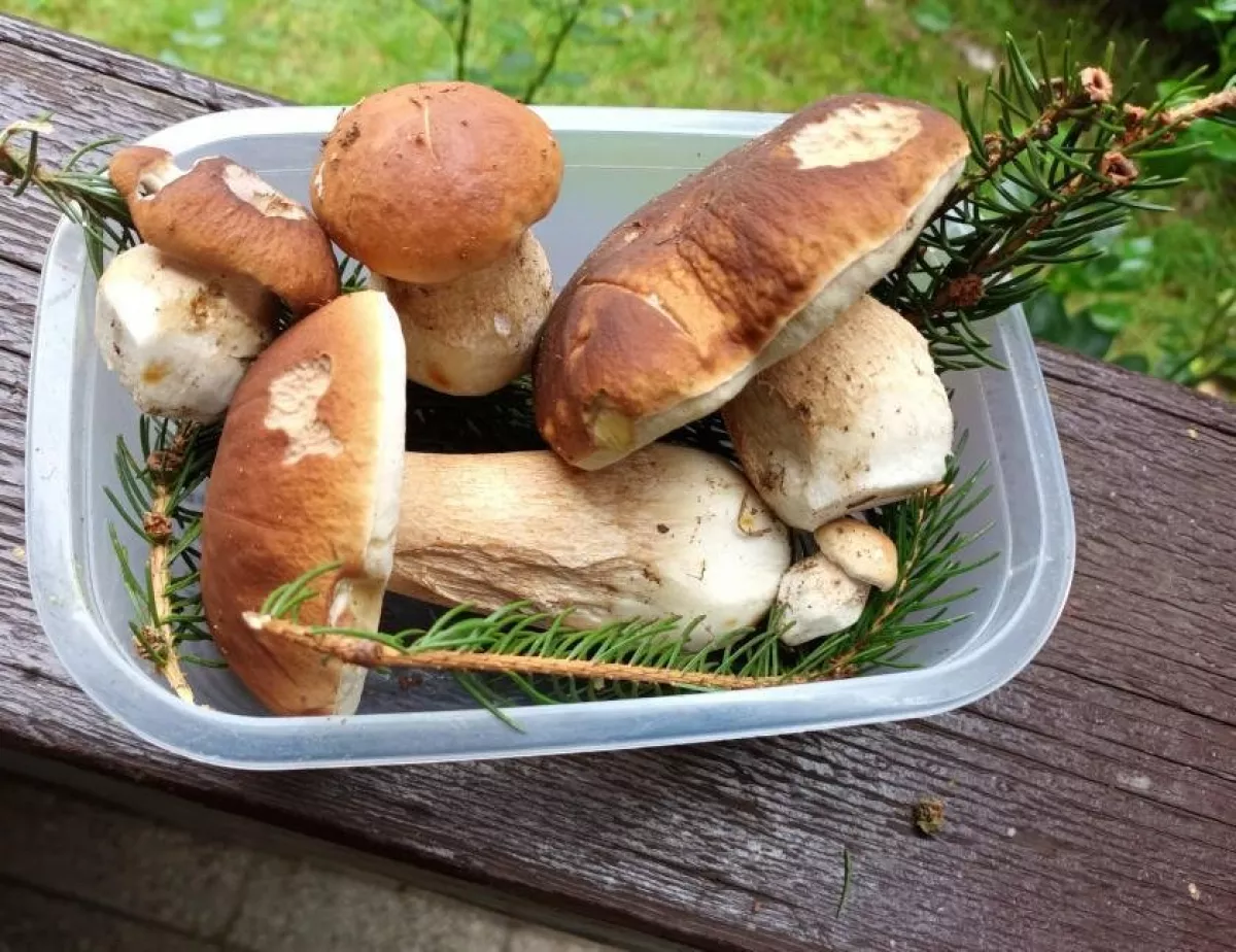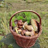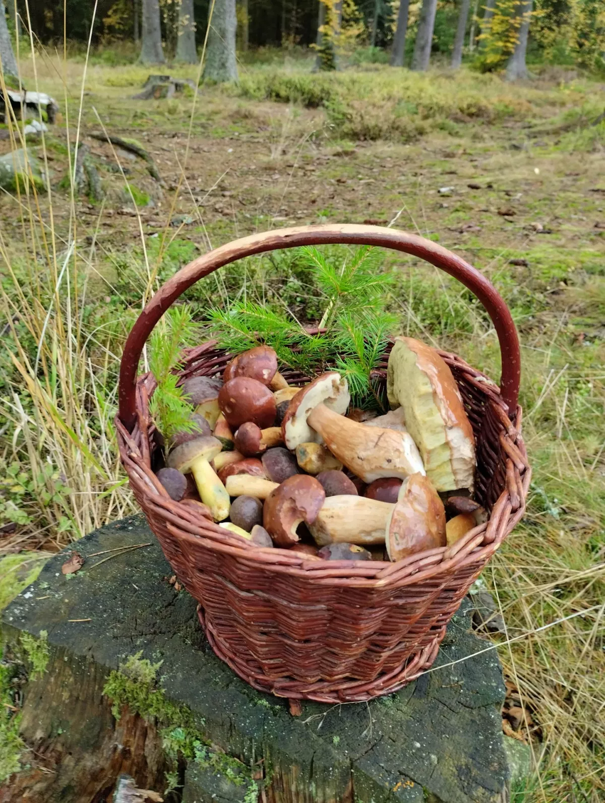 Babička jako z pohádky--pěkné košíčky s hříbečkama.
