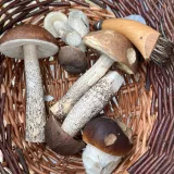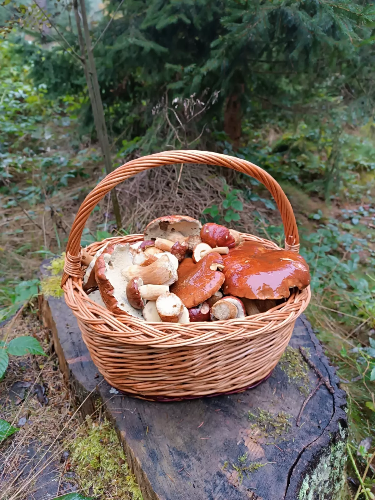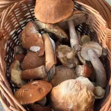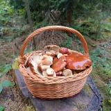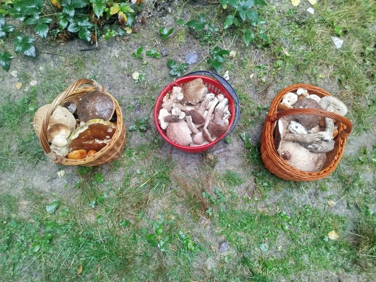 Babička jako z pohádky--pěkné košíčky s hříbečkama.
