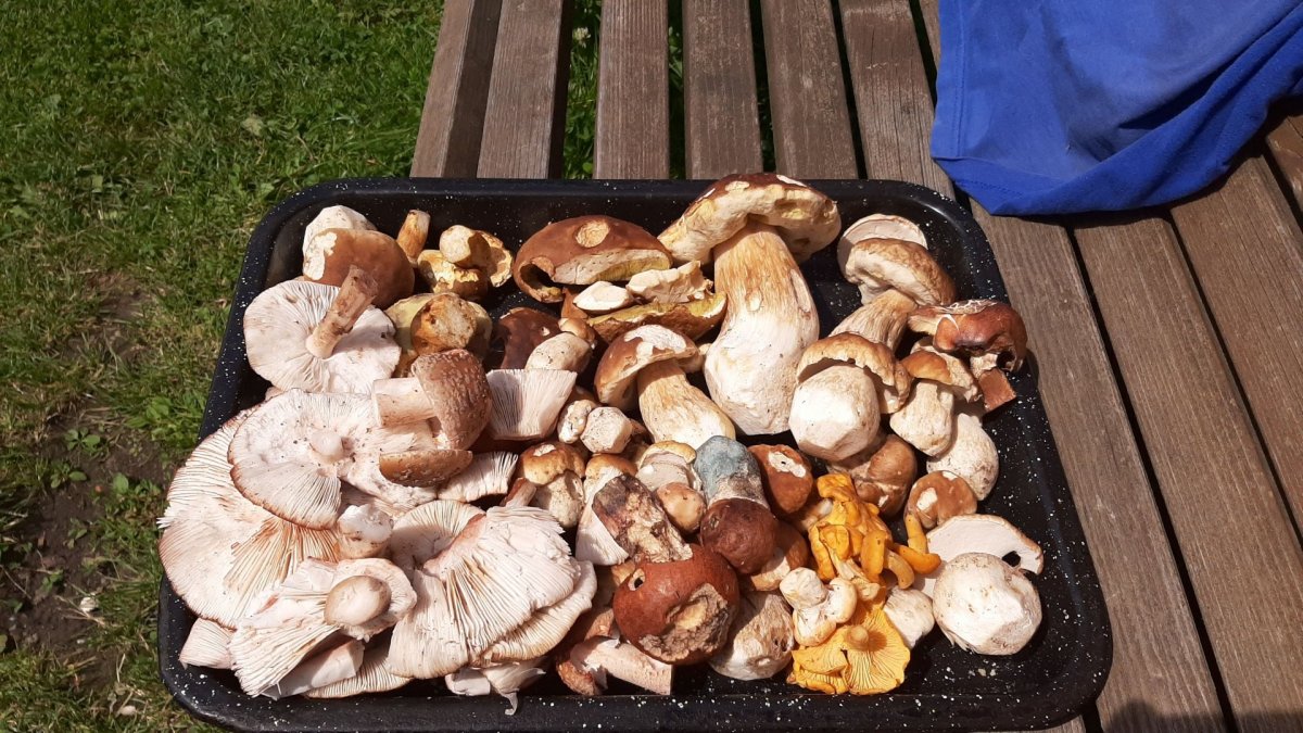 Dnes Rasová - pár klouzků, růžovek, dva praváky, a dokonce i suchohřiby... Nicméně hodně prolezené a houby rozkopané po celém lese ☹️