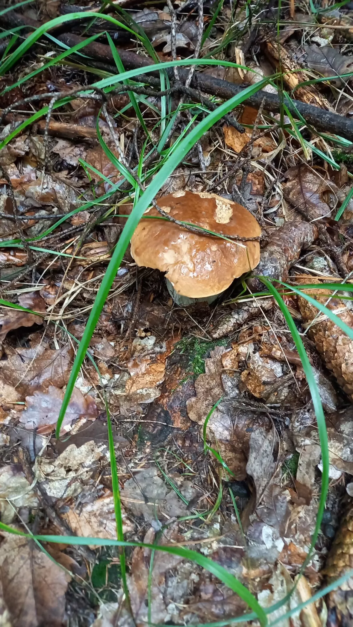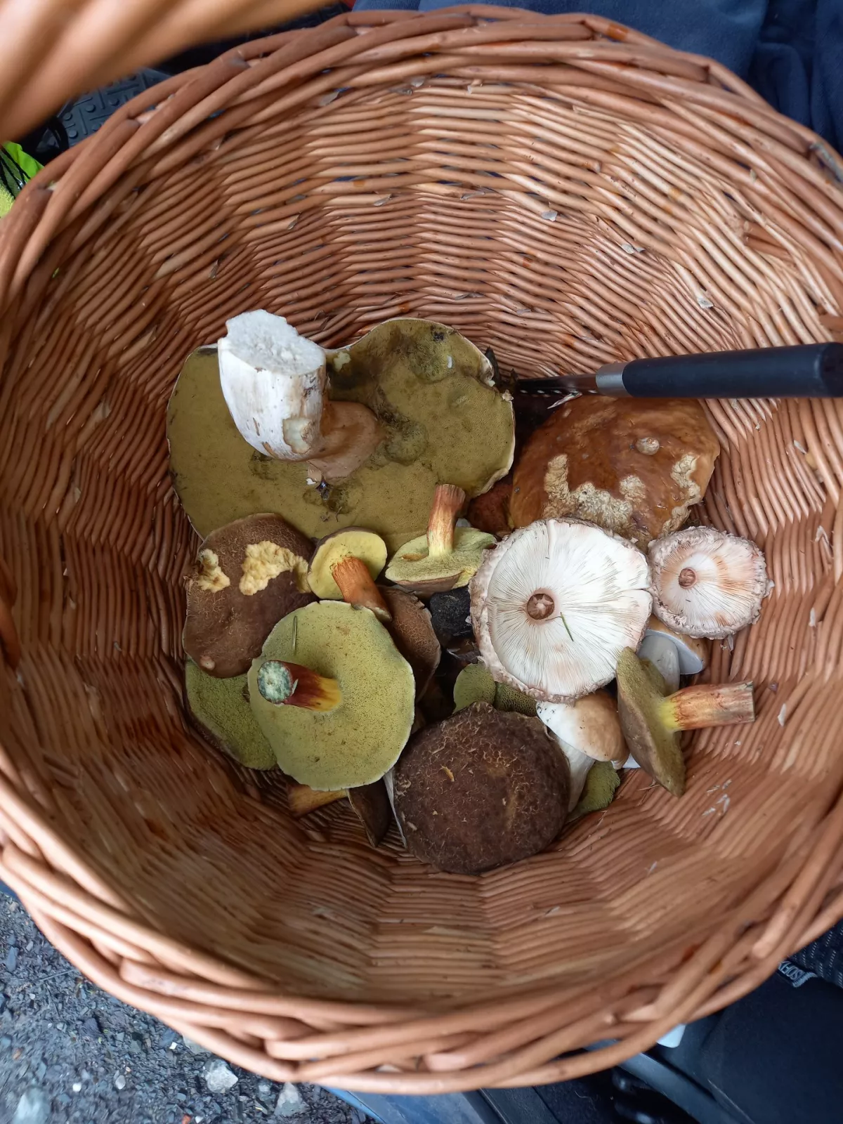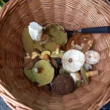 Podhostýnsko, druhý pokus. Má místa už jsou v obležení houbařů, tak jsem si vybral cestu kudy normálě nechodím. Nakonec dobrý, dvě nová kozáková ložiska, spousta babek - více druhů, sem tam bedla, klouzek, masák a jeden hezký hříbek, kterým si nejsem jistý - medotrpký?
