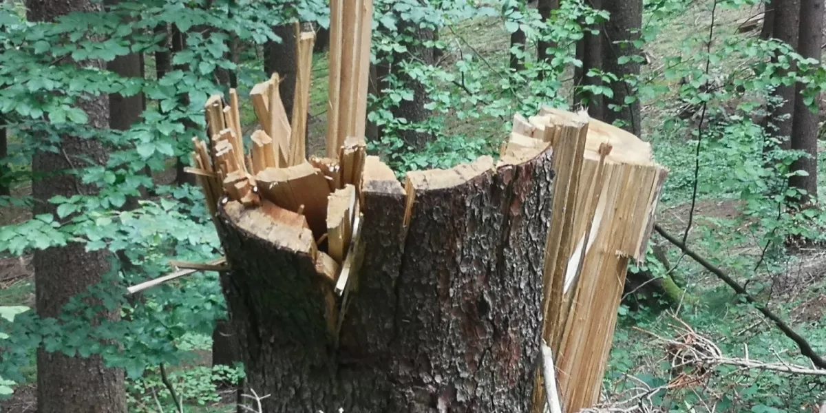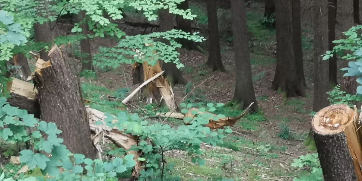 Velké Karlovice - bída, 3 bedly a jeden hříbek.Tak aspoň pár fotek po tornádu.Neskutečná síla,když to ukroutí zdravé stromy jak sirky.