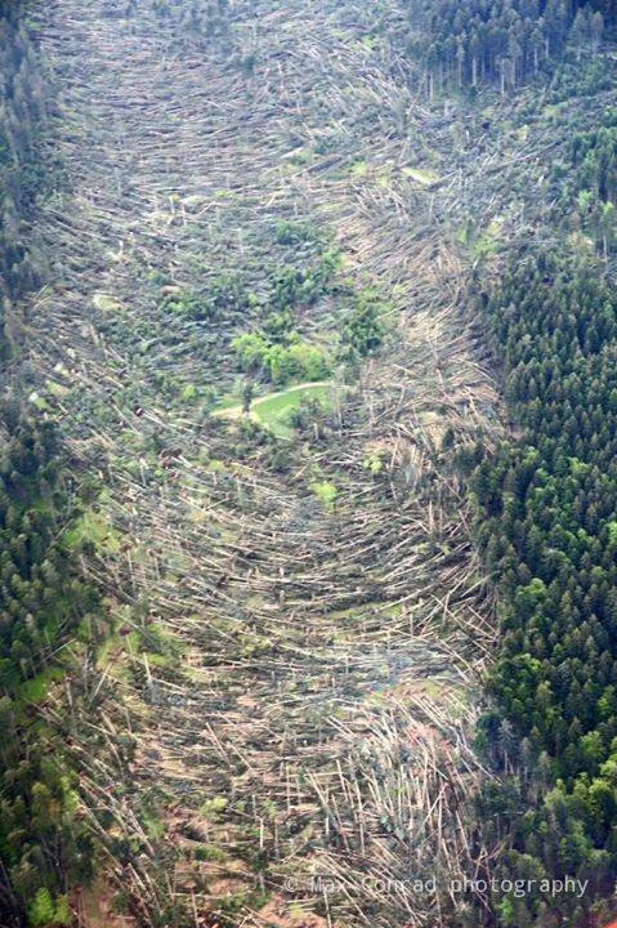 Sice těch stromů je tam ulomených/popadaných/vybraných více ale kdyby tam bylo tornádo třeba síly EF2 tak by to vypadalo takhle: